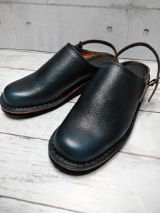 赤の革のストラップを付けた一足が完成しました。